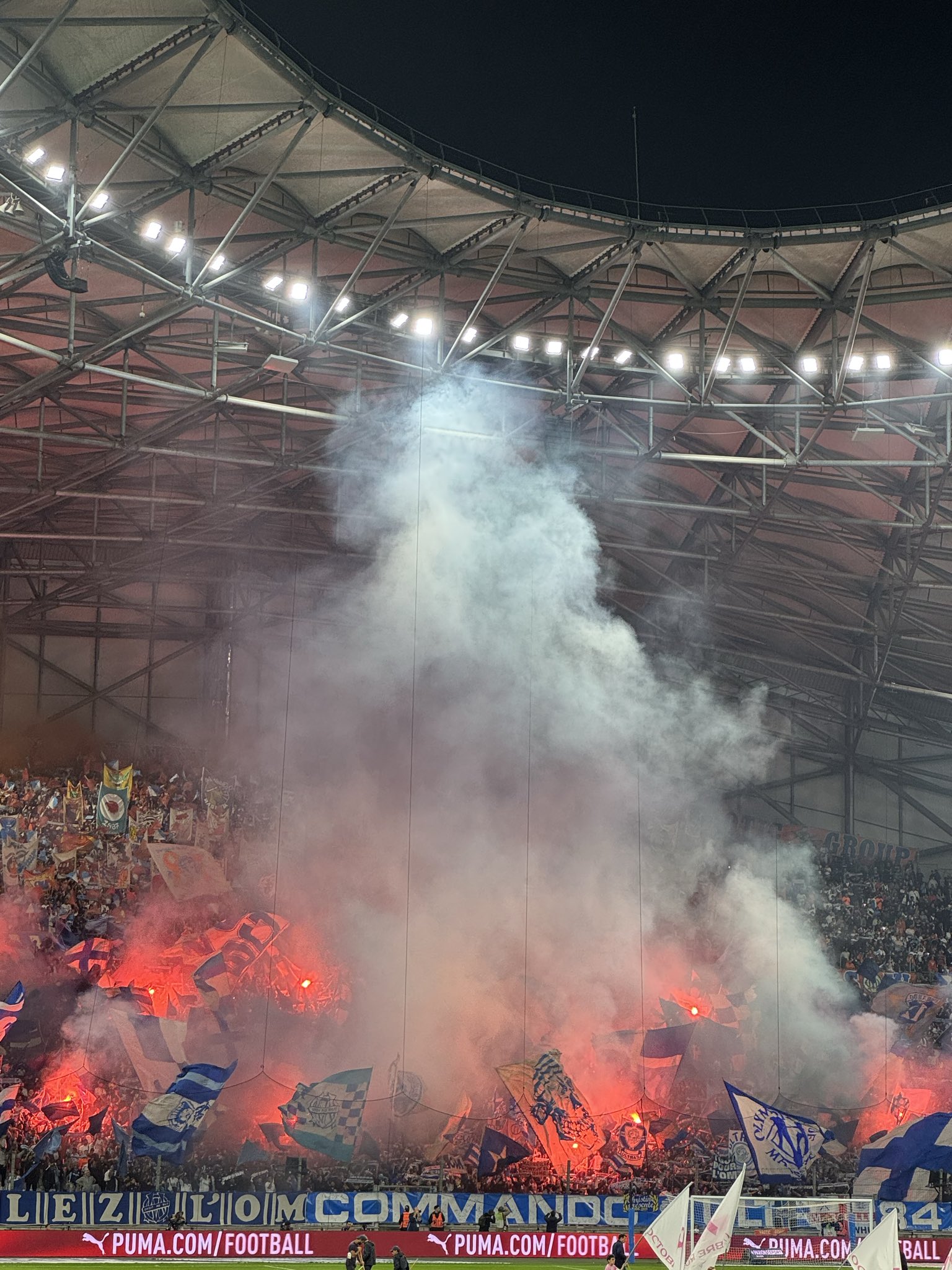Côté terrain, ça n’est pas terrible, et c’est même Le Havre qui ouvre le score à la 24e minute. La première mi-temps est vraiment médiocre, et c’est une main havraise qui va nous permettre d’égaliser sur pénalty. L’arbitre après quelques minutes de VAR mettra même un carton rouge au havrais, ça semble généreux car vu du Virage c’était à la limite de la surface. La mi-temps se termine sur ce piteux 1-1. En seconde période, le jeu n’est toujours pas au niveau, et l’OM peine à se procurer des occasions contre l’un des derniers du championnat réduit à 10. À moins de 30 minutes de la fin, De Zerbi décide de modifier l’animation offensive et c’est notamment Robinho Vaz et Nadir qui rentrent sur le terrain. Cela réveille l’équipe, et Greenwood (honte à nous) marque 3 buts en 10 minutes. C’est ensuite Murillo et Robinho Vaz qui plantent, pour un score de 6-2 qui ne reflète pas du tout le match.